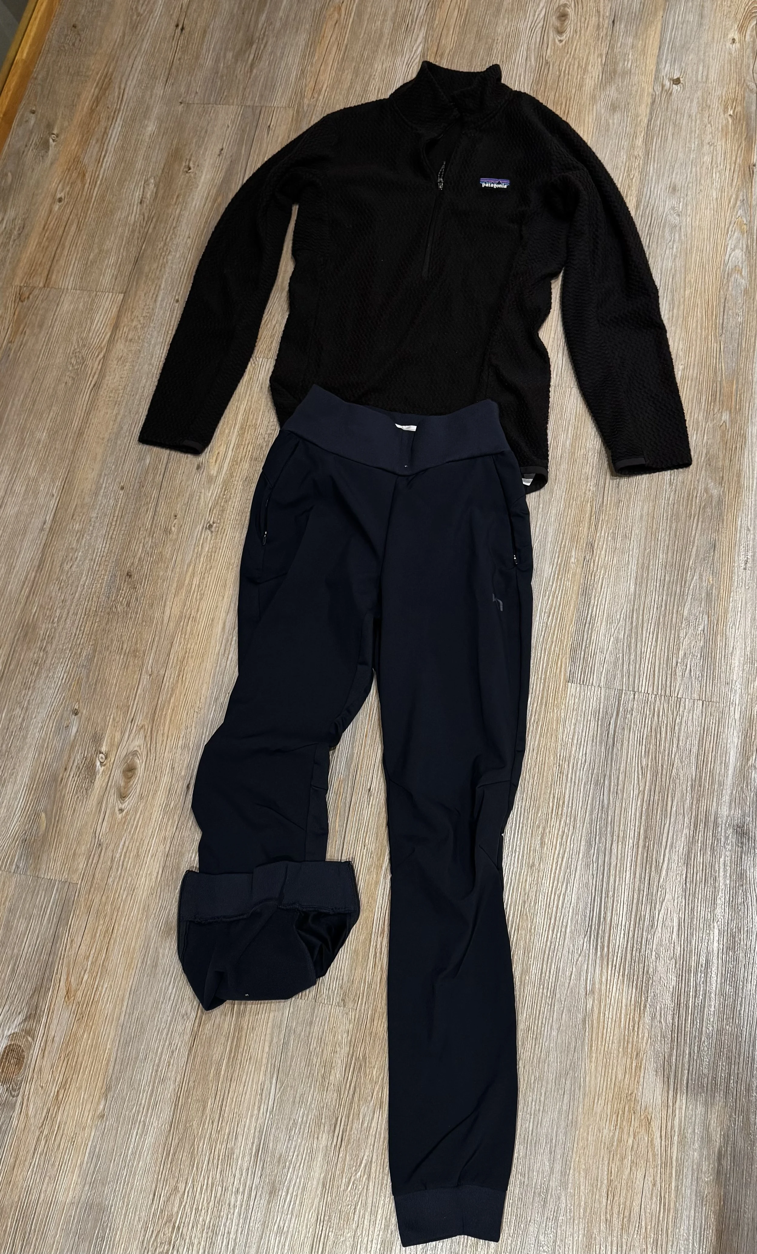 The third, outer layer should be waterproof and windproof. A lot of times, this is just a shell rather than a lined or insulated layer. This is common in skiing. There are plenty of options for this layer here in Norway as well. Our son does have varying warmth degrees of outer layers but they are all mostly wind- and waterproof. He has a rain onesie that is waterproof and not very breathable, an autumn onesie that is breathable and water resistant, and a winter onesie that is slightly insulated and more water resistant, but not necessarily waterproof. He does wear two layers under his winter onesie so he generally stays pretty dry. This is where I like to wear a fleece lined pants option that is waterproof or water-resistant and windproof on the outside, but fleece lined and warm on the inside.